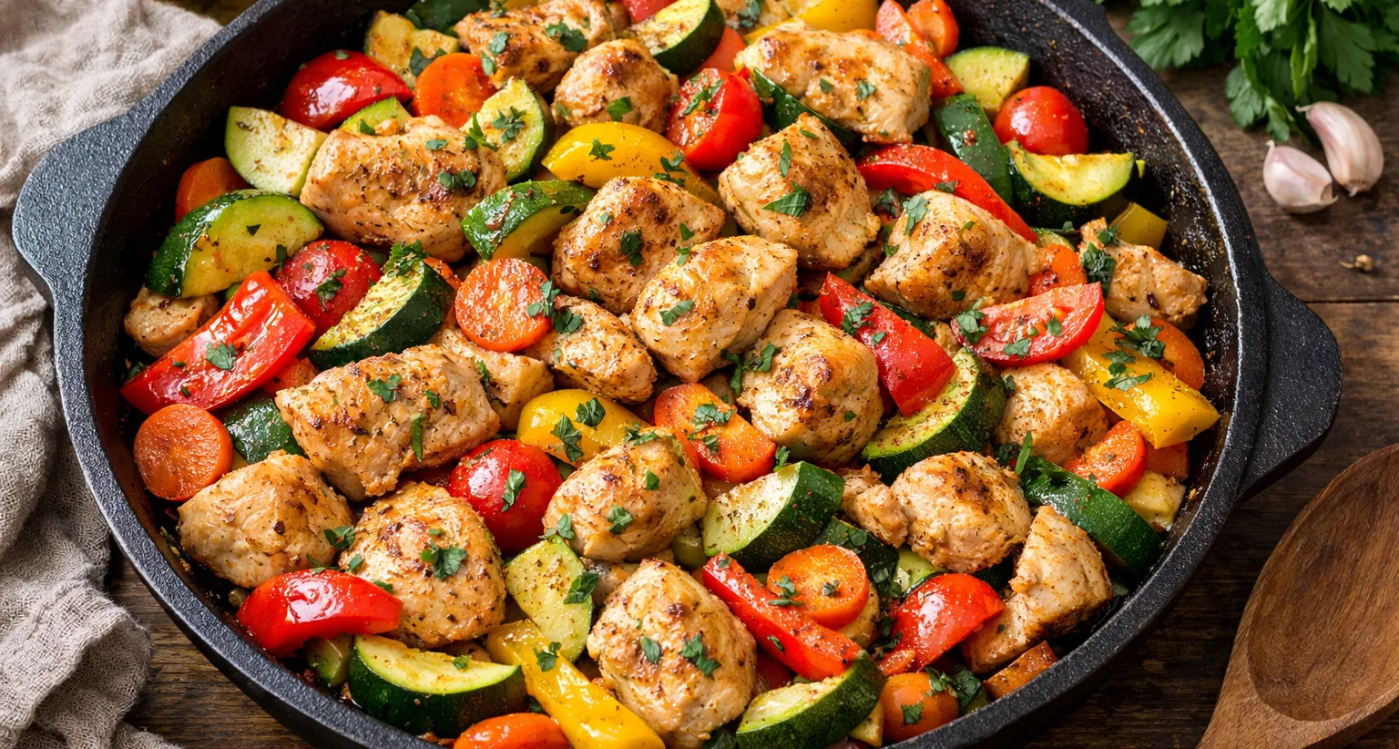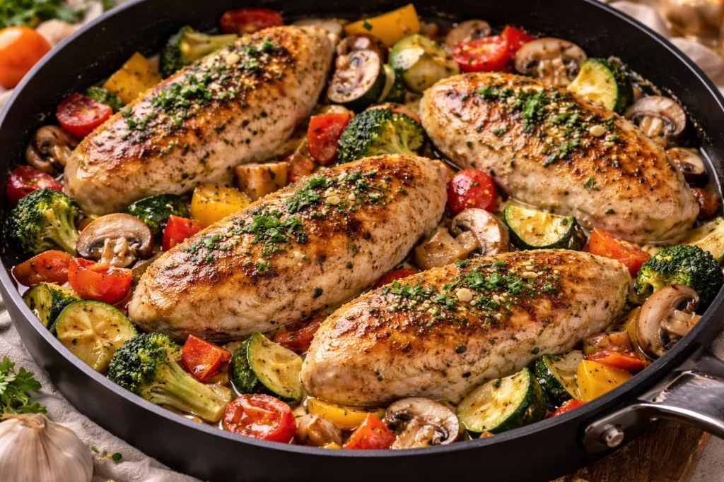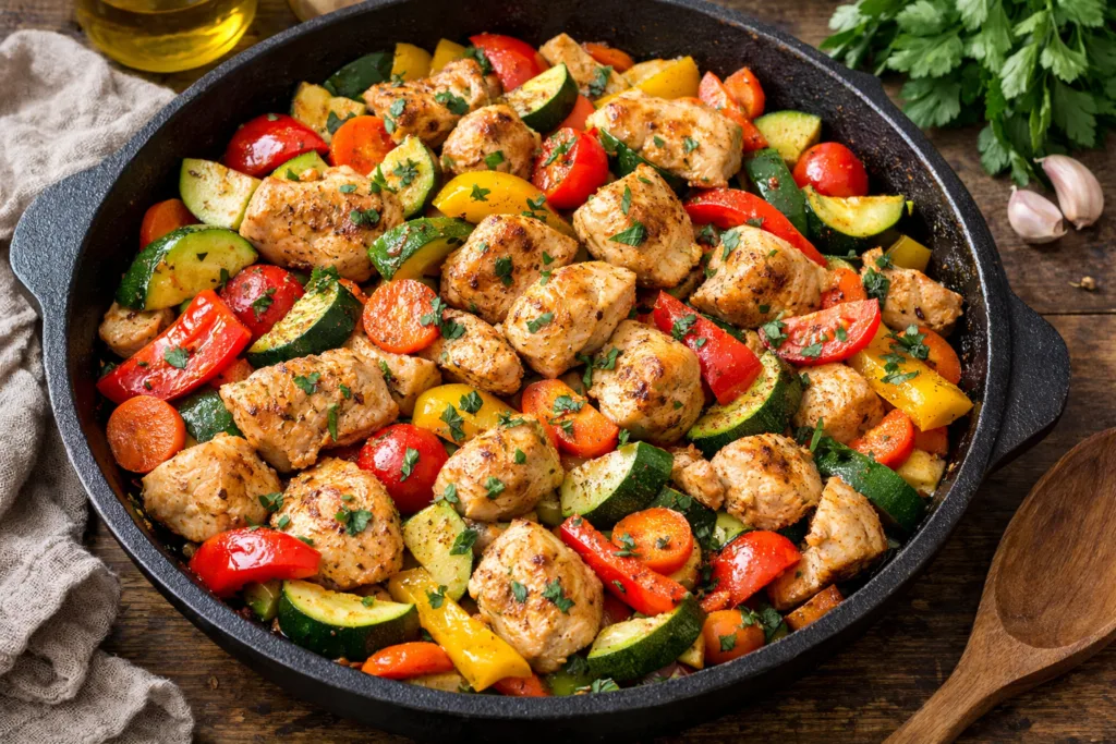 Куряче філе з овочами на сковороді — це одна з найзручніших і найпопулярніших страв для щоденного меню. Вона готується швидко, виходить соковитою, поживною та підходить навіть для здорового харчування.