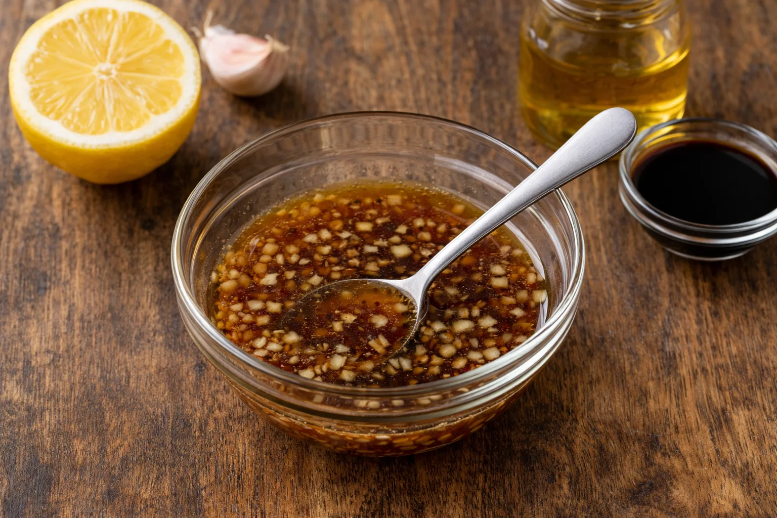 У невеликій мисці змішайте мед, лимонний сік, соєвий соус і подрібнений часник. Добре перемішайте до однорідності — це буде ароматний медово-лимонний соус.