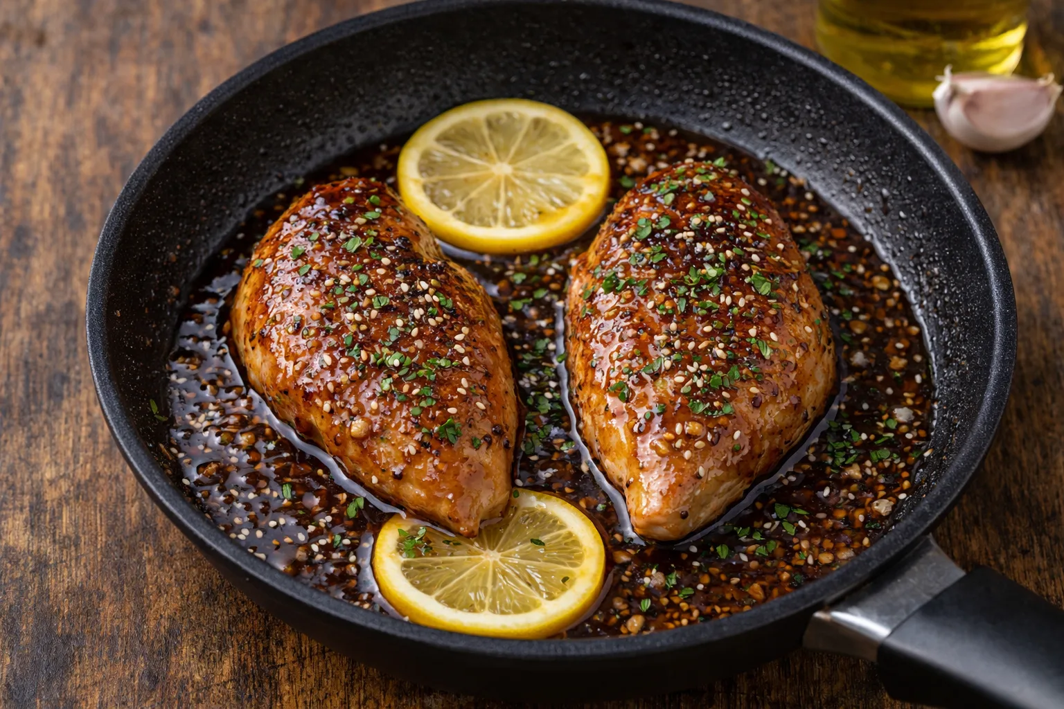 Коли соус перетвориться на карамельну глазур і покриє курку, зніміть сковороду з вогню. Перед подачею посипте страву свіжою зеленню або кунжутом для додаткового аромату та красивого вигляду.