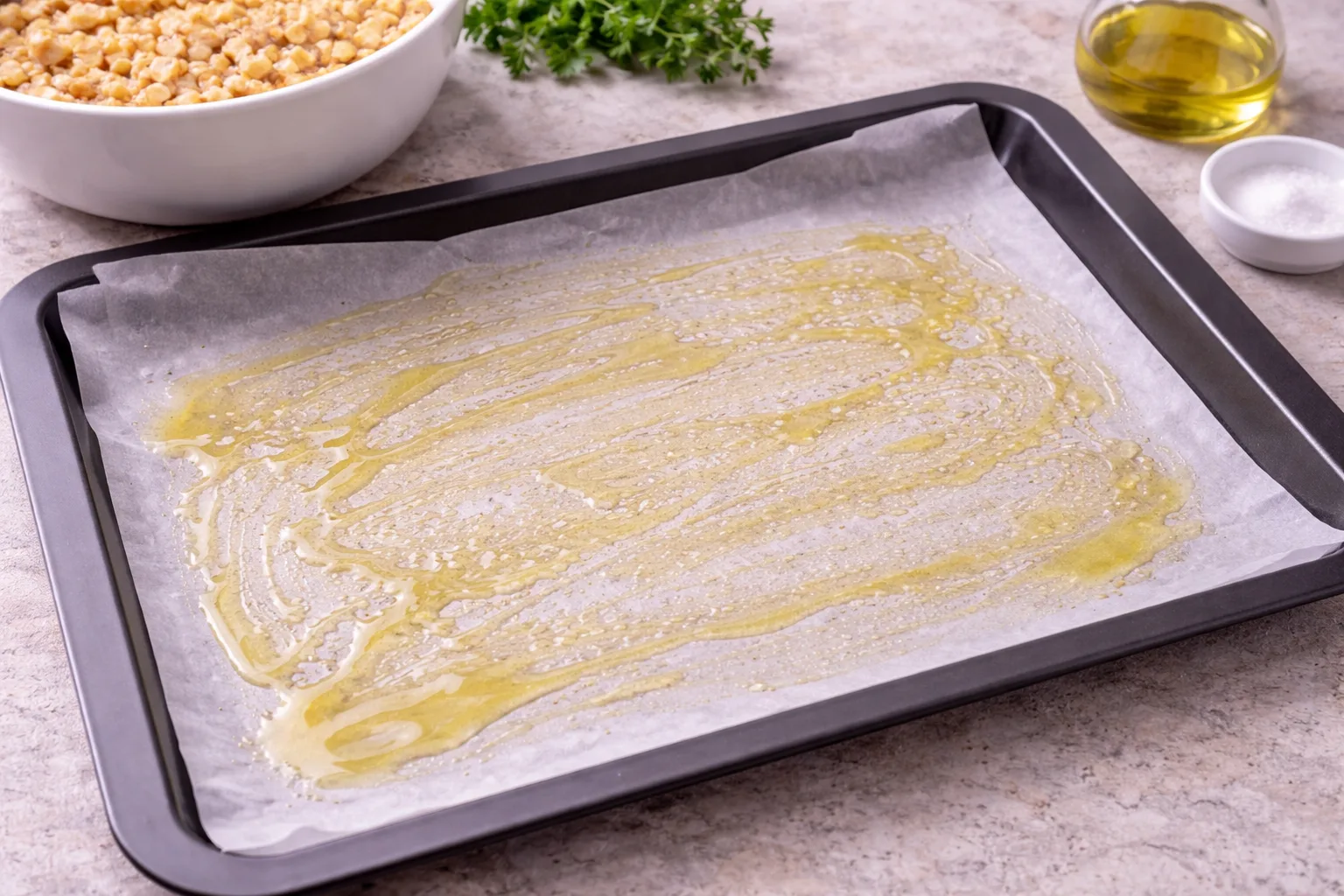 Застеліть деко пергаментом і змастіть оливковою олією.