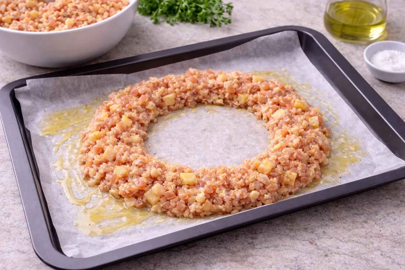 Викладіть масу у вигляді кільця, залишаючи порожню середину.
