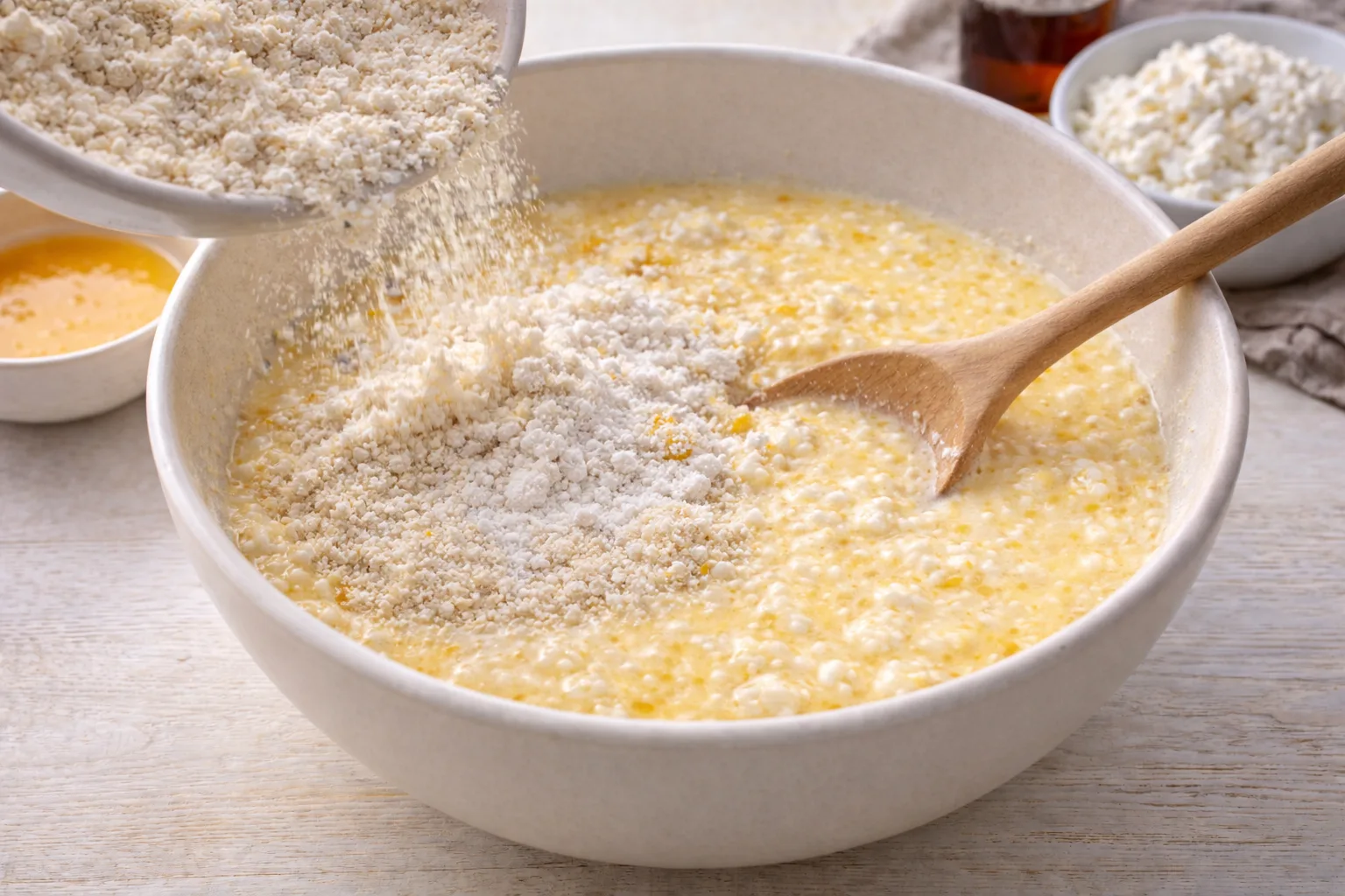 Ретельне змішування сухих інгредієнтів допомагає уникнути грудочок і забезпечує рівномірний підйом тіста під час випікання.Приготування рідкої суміші