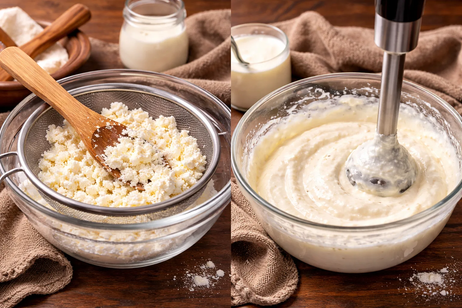 Перетріть сир через сито або перебийте блендером до гладкої кремової консистенції.