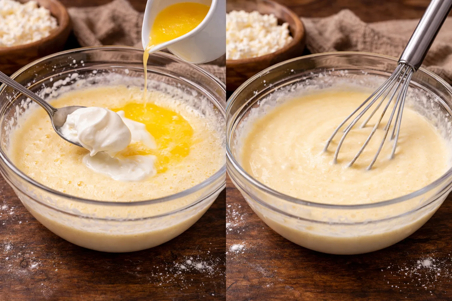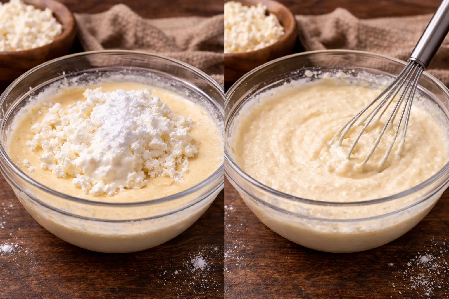 Ще один важливий момент — правильне поєднання інгредієнтів. Яйця додають легкість і структуру, сметана або вершки створюють кремову текстуру, а невелика кількість крохмалю або борошна допомагає запіканці добре тримати форму після випікання. Завдяки цьому десерт виходить ніжним усередині та з апетитною золотистою скоринкою зверху.