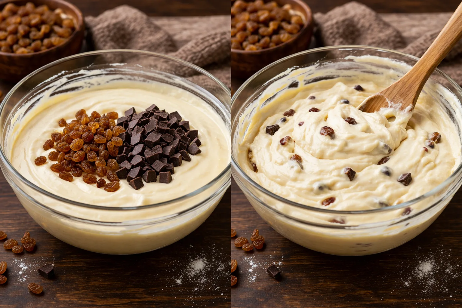 За бажанням додайте родзинки або шматочки шоколаду і перемішайте.