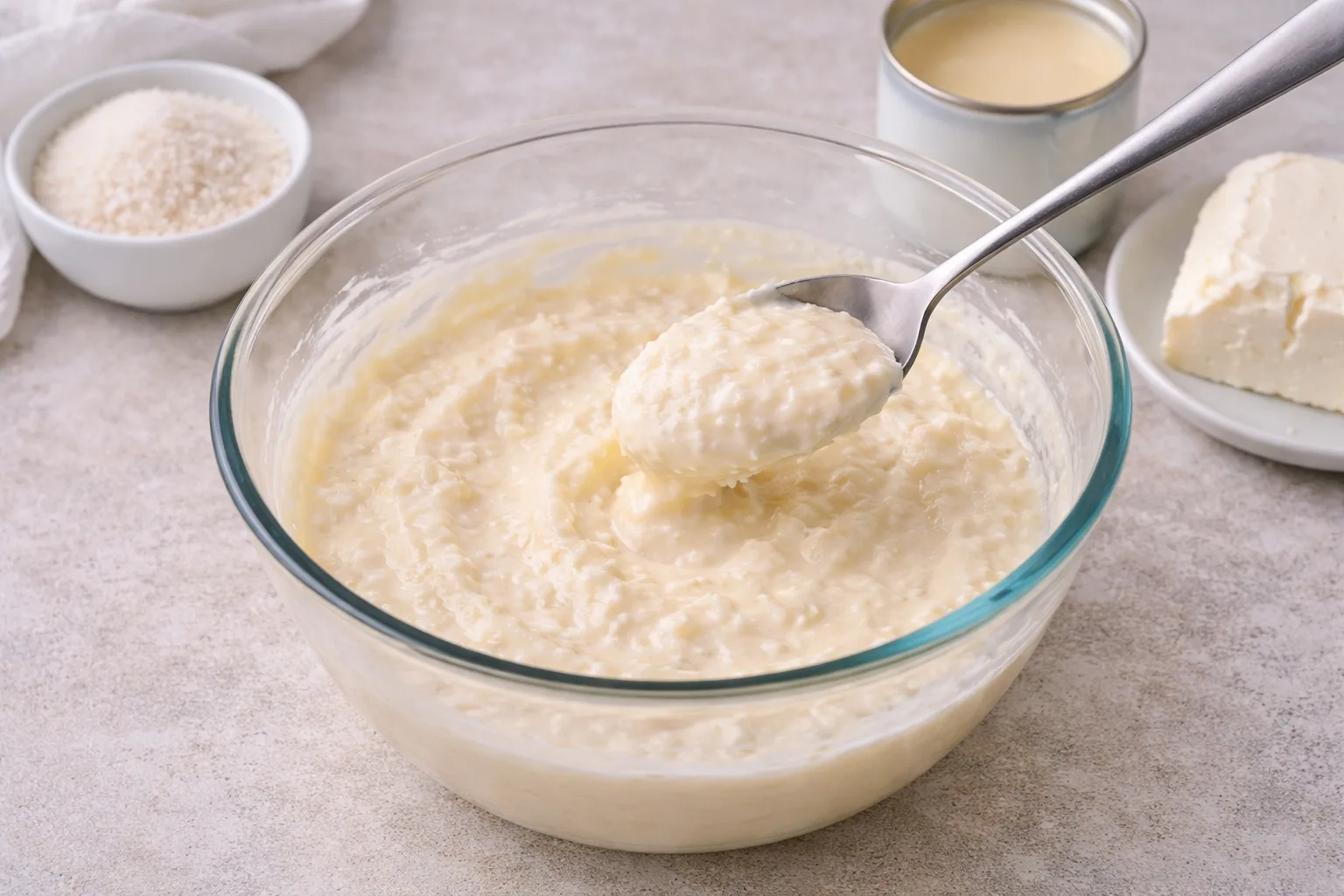 Змішайте крем-сир, згущене молоко та кокосову стружку до кремової консистенції.