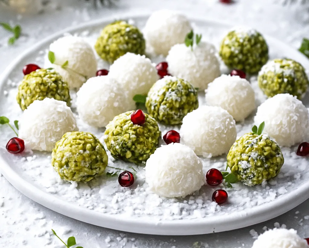 Обкачайте половину кульок у фісташковій крихті, а другу половину — в кокосовій стружці, щоб створити “мікс текстур”.