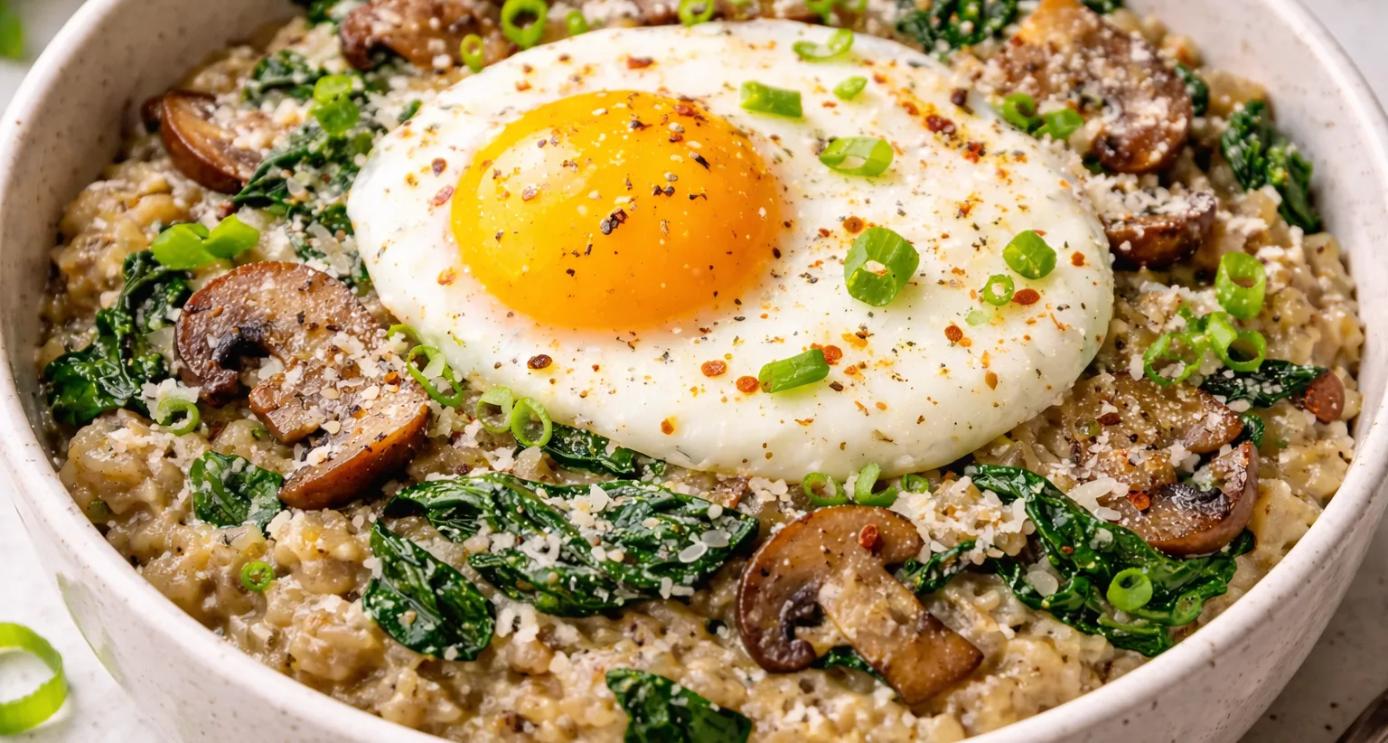 🥣 Солона вівсянка зі шпинатом, грибами та яйцем