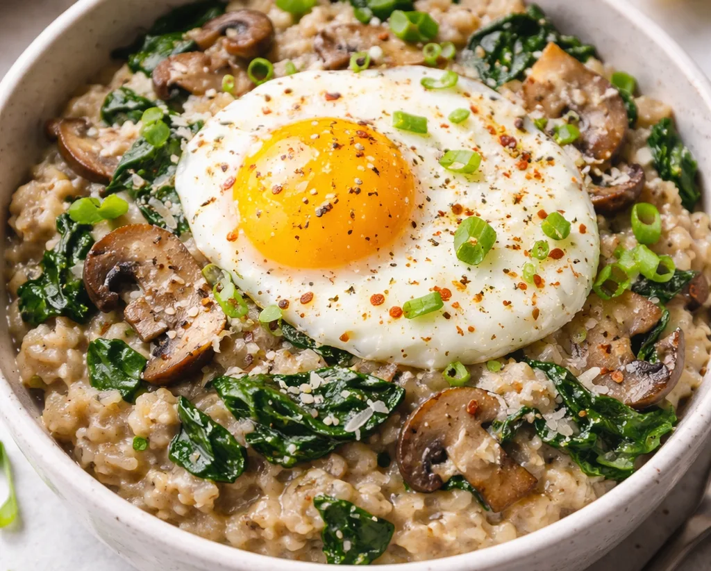 🥣 Солона вівсянка зі шпинатом, грибами та яйцем