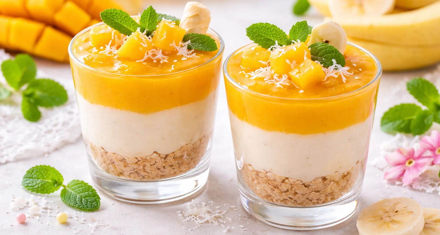 Весна — ідеальний час для легких та яскравих десертів, особливо коли хочеться радувати дітей і гостей чимось святковим та апетитним. Тропічний крем-банановий десерт — саме такий варіант: поєднання ніжного бананового крему та яскравого пюре манго створює справжню смакову веселку в склянці.
