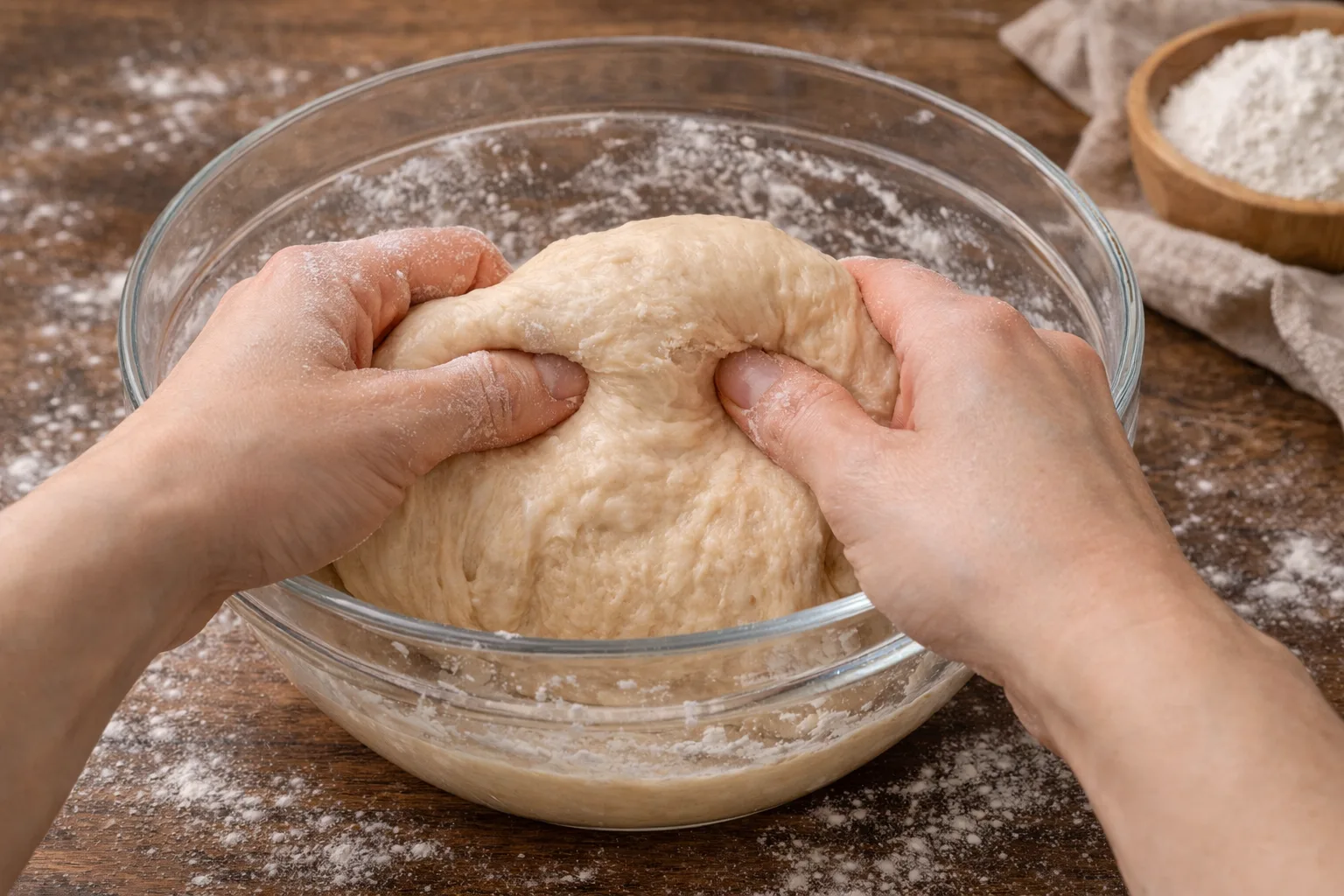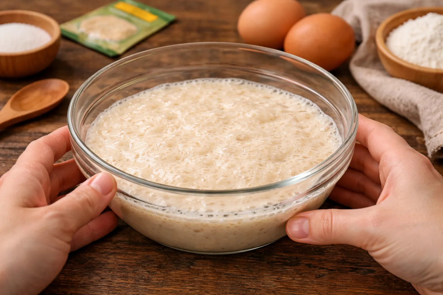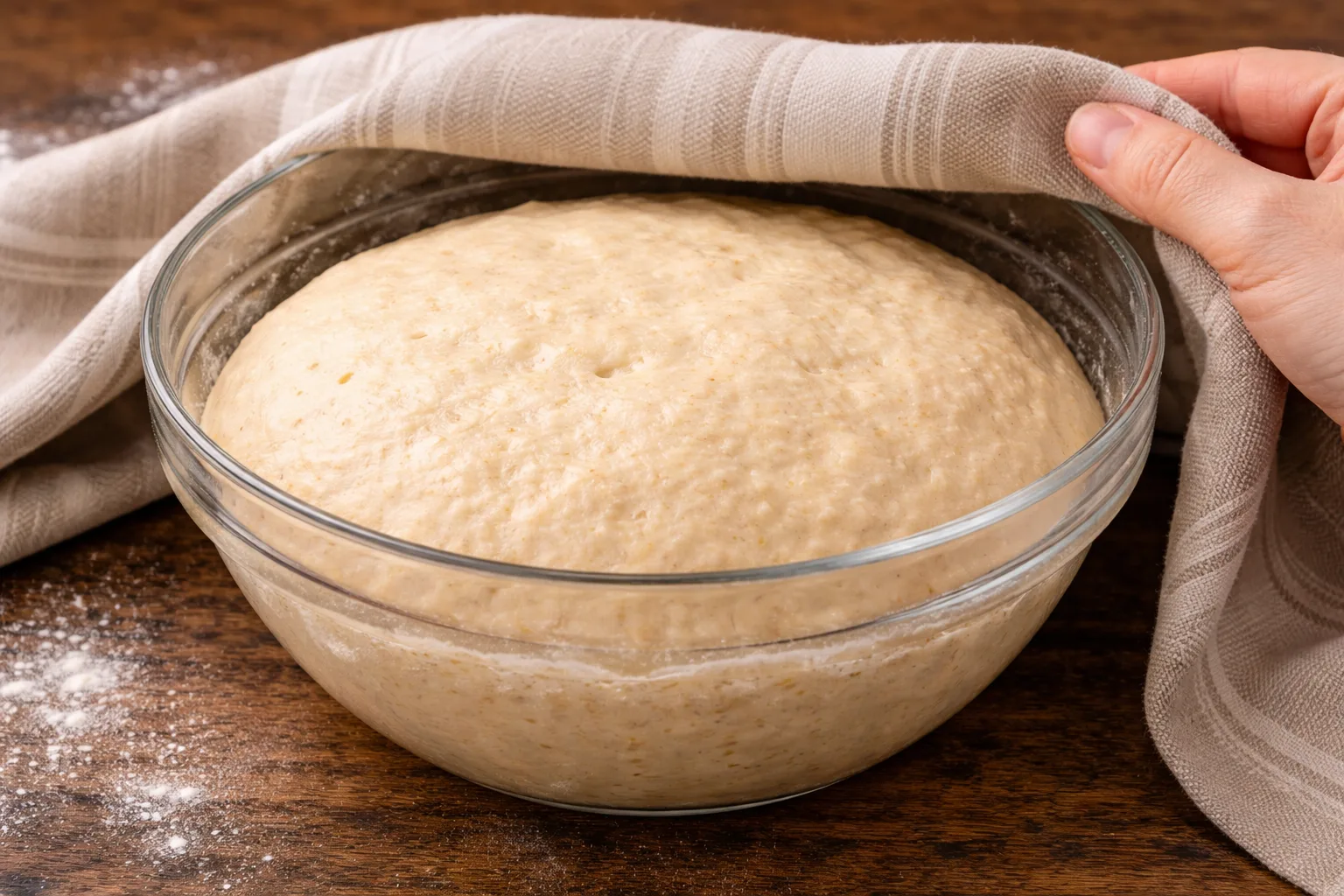 Накрийте миску рушником і залиште в теплому місці приблизно на 1 годину, поки тісто не збільшиться в об’ємі.