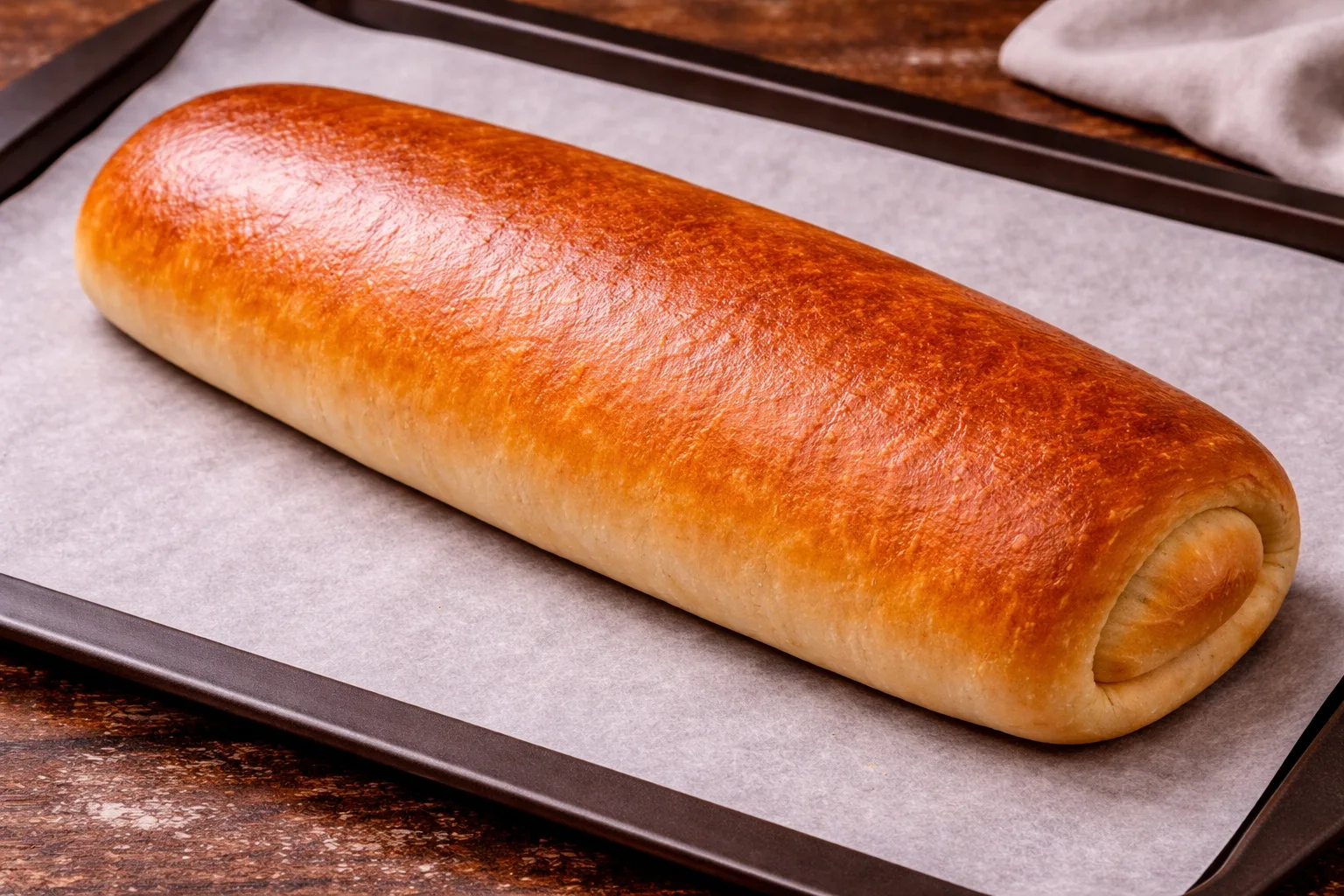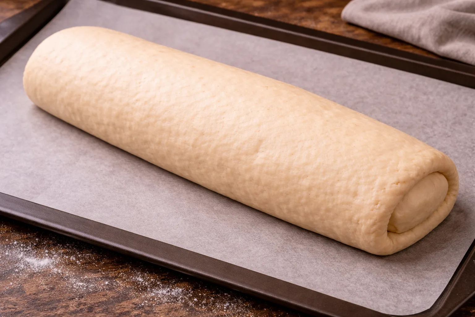 Викладіть рулет на деко з пергаментом і залиште ще на 20–30 хв для підйому.