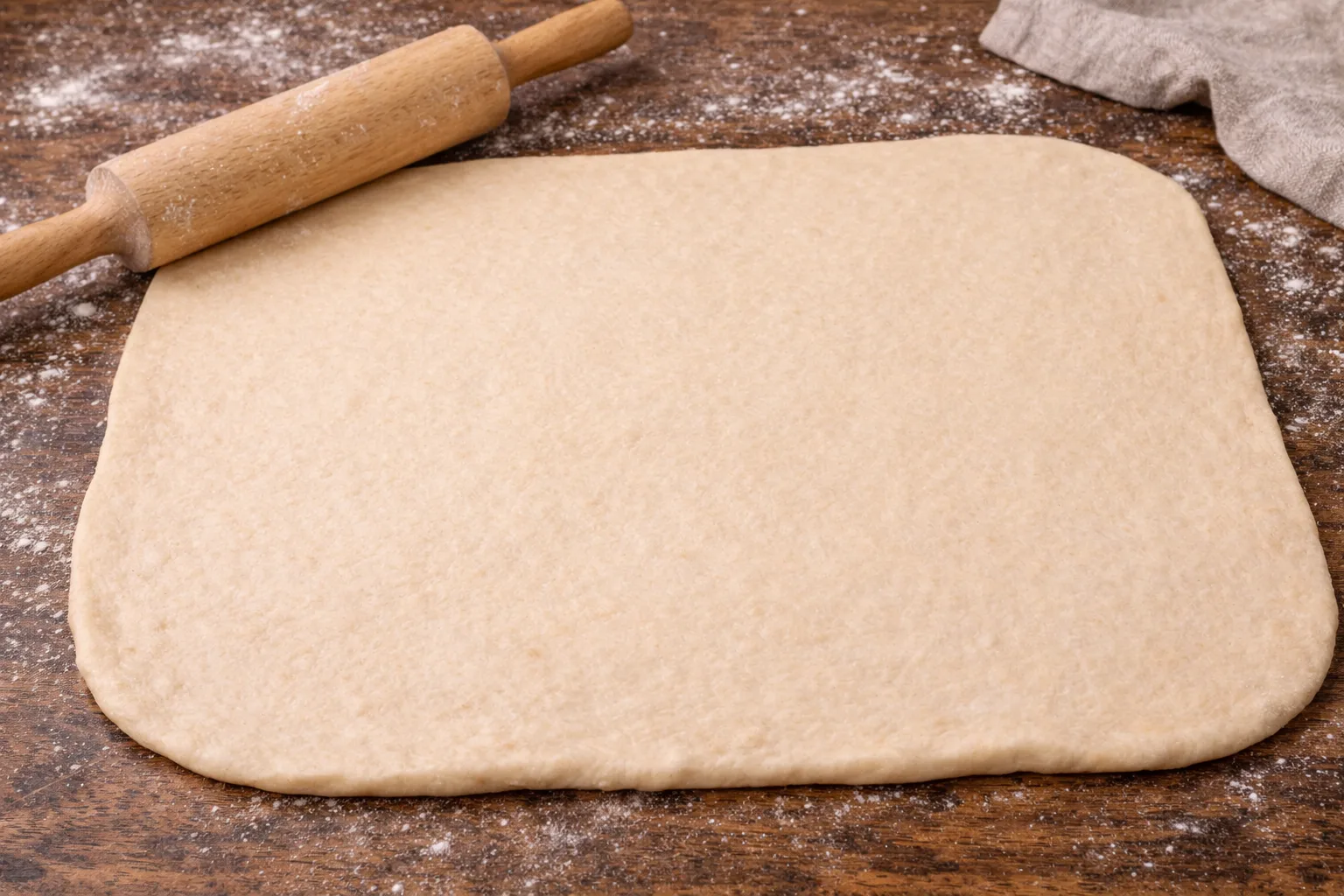 Тісто викладіть на стіл і розкачайте у прямокутний пласт товщиною приблизно 5 мм.