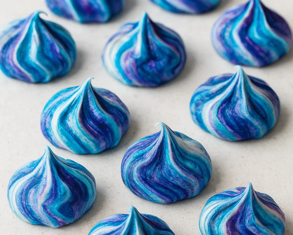 Хитрість рецепта полягає у способі змішування кольорів. Після приготування основної маси її розділяють на кілька частин, які забарвлюють у різні “космічні” відтінки. Потім ці кольори з’єднують у одну стрічку так, щоб вони не повністю перемішувалися. Коли масу відсаджують на пергамент, природні завихрення створюють глибину й об’єм. Ви отримуєте ефектний малюнок без особливих зусиль — саме це робить рецепт ідеальним навіть для початківців.